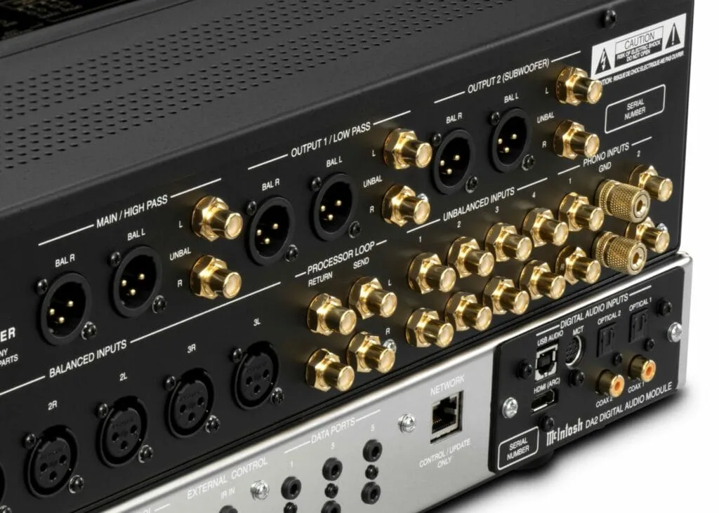 Về ngõ Digital, McIntosh đã trang bị cho cả 2 mẫu Preamp mới công nghệ Module DA2, được tích hợp bộ DAC Quad Balanced, 8-channel, 32-bit. DA2 cung cấp nhiều ngõ kết nối, với 7 ngõ vào chuyên dụng, bao gồm 02 ngõ coaxial và 02 ngõ optical hỗ trợ giải mã lên đến 24 bit/ 192kHz , 01 ngõ USB hỗ trợ tối đa DSD512 và DXD 384kHz, 01 ngõ MCT và 01 ngõ HDMI Audio Return Channel (ARC) – cho phép người nghe kết nối C55 và C2800 trực tiếp với TV. Đặc biệt, các định dạng âm thanh đa kênh như Dolby® và DTS® cũng sẽ được chuyển đổi thành âm thanh stereo một cách mượt mà và tinh tế, đem lại trải nghiệm điện ảnh thú vị và sống động.
