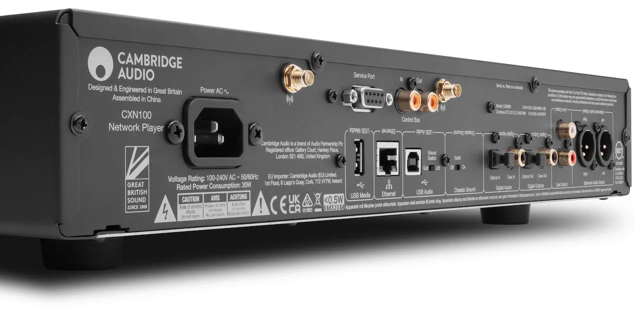 Góc phía sau của đầu phát mạng Cambridge Audio CXN100