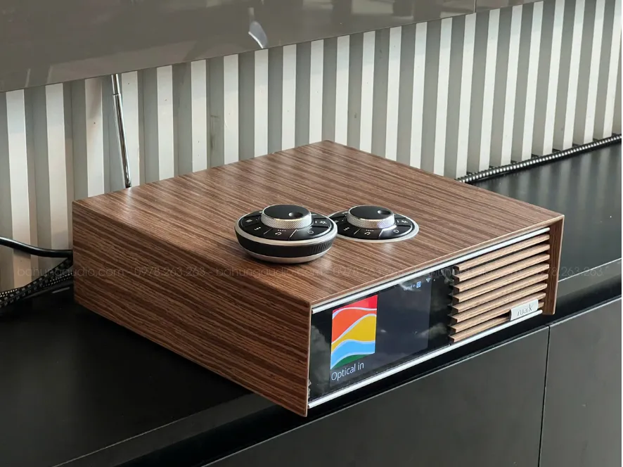 R610 (receiver/streaming all-in-one): ampli mạnh mẽ + streamer tiện lợi; mở app là phát, gọn dây, thẩm mỹ chuẩn nội thất Anh.